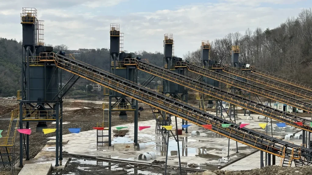 浙江年产190万吨建筑石料项目进入设备安装关键阶段。针对项目核心物料玄武岩硬度高、磨蚀性强的特点,全套破碎线配套的定制化皮带机输送系统已基本就位,将为矿石高效转运提供有力保障。