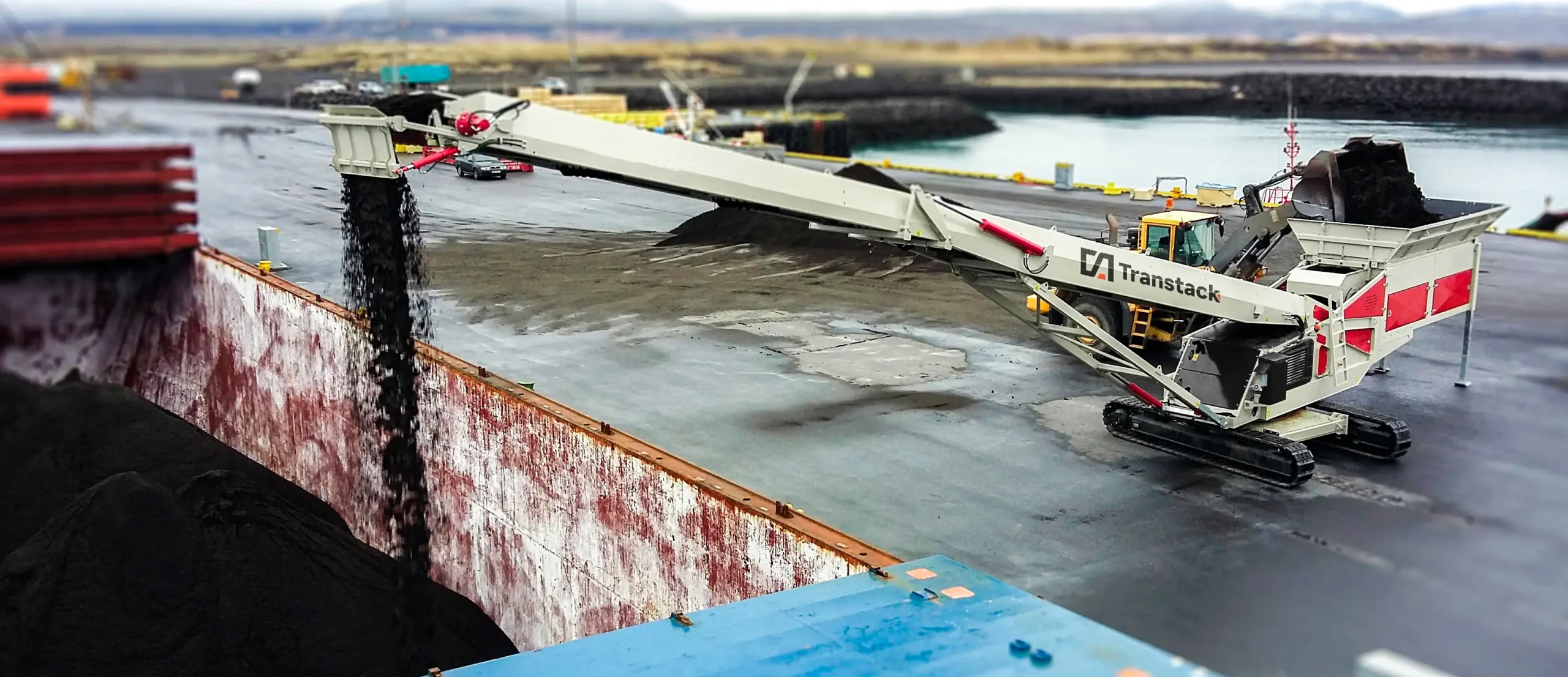 360°旋转履带式料斗给料机配备中心安装的回转支承,实现料斗与吊臂360°旋转。该设备特别适用于驳船装卸、铁路装卸及堆料作业,其平行移动功能使操作员能将设备平行于船舶进行操控,无需重新定位设备,从而显著提升装载速率和作业效率.