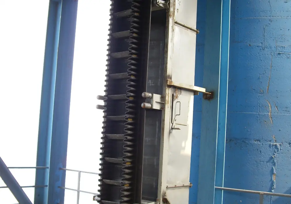 物料从尾部装载到由两侧挡边和横隔板形成的“格斗”中,随着输送带运行,这些格斗承载着物料上行。在达到顶点后,输送带绕过滚筒,物料在重力或离心力作用下被卸出。其核心是利用物理围挡来防止物料在陡坡上下滑或洒落。