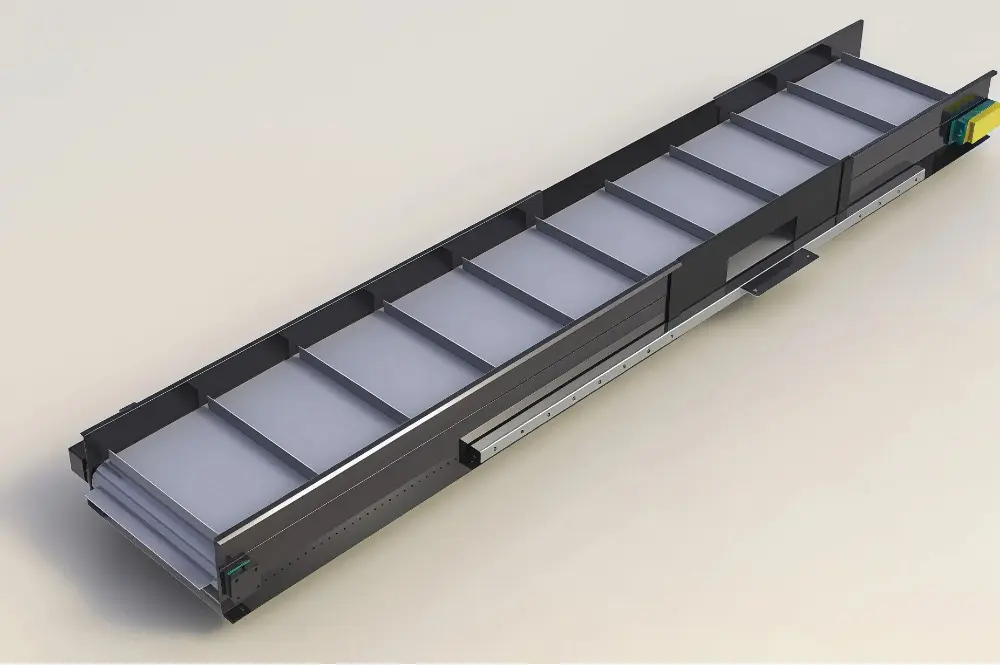 裙边带式输送机依靠驱动滚筒与输送带之间的摩擦力,带动输送带及其上物料连续运动。两侧加装的固定式橡胶挡边,将物料限制在输送带宽度范围内,有效解决了因输送带跑偏、抖动或物料堆积角过小而导致的侧向洒落问题。